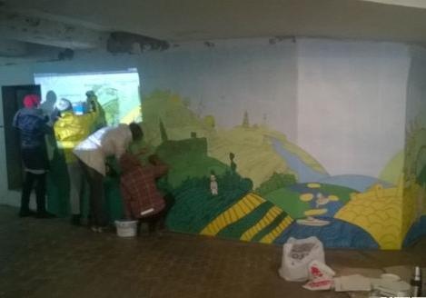 В Киеве расписывают стены подземного перехода